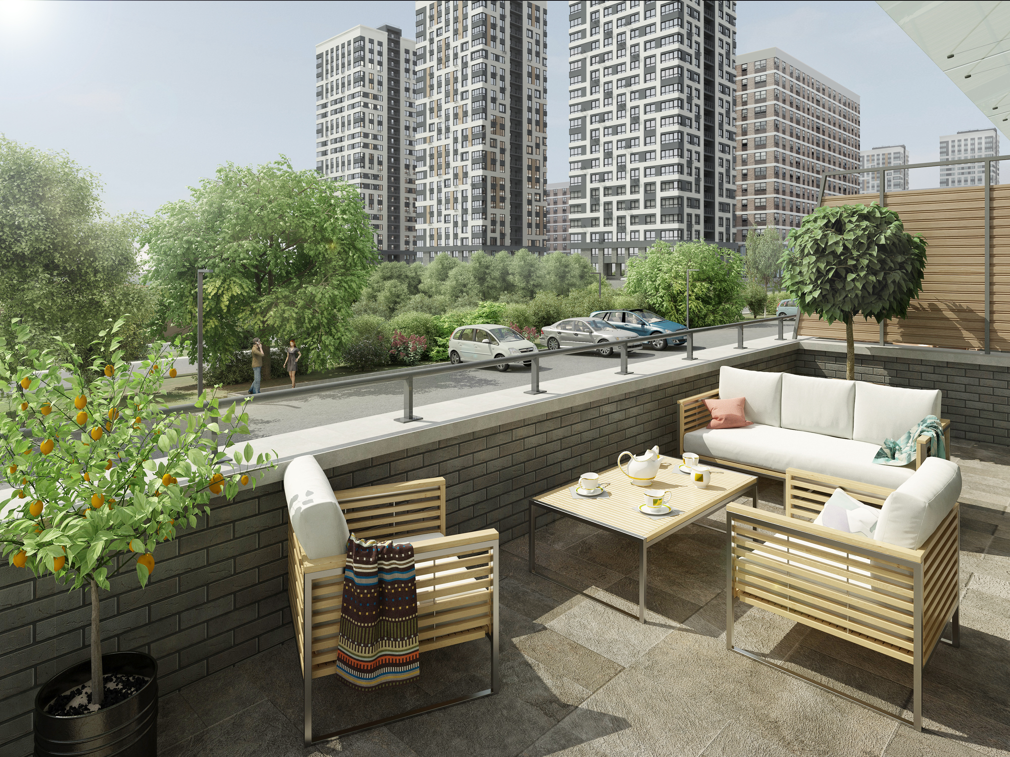 - Двор без машин и безопасный пешеходный бульвар — тишина и безопасность для детей, удовольствие от прогулок.