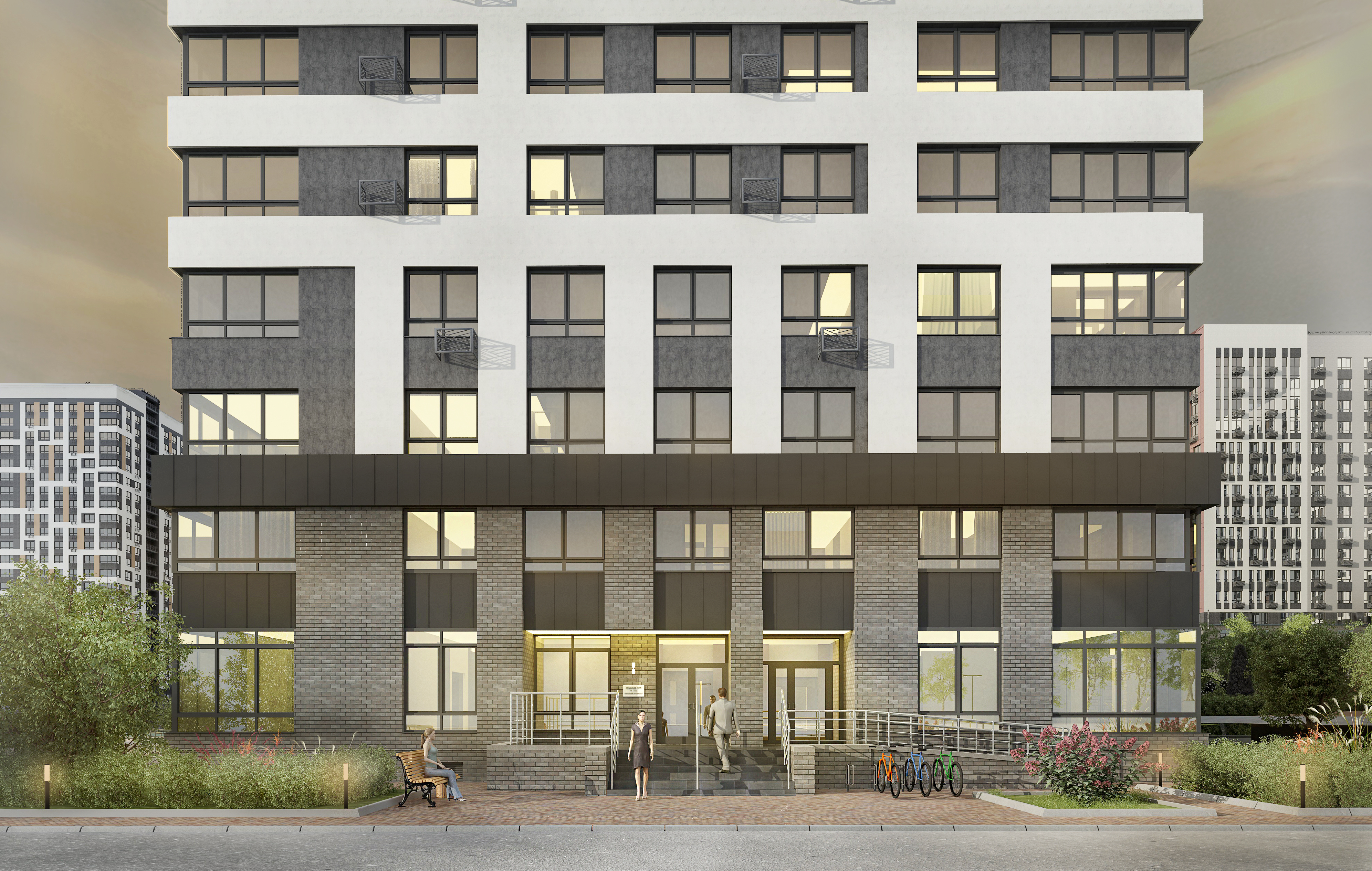 - Двор без машин и безопасный пешеходный бульвар — тишина и безопасность для детей, удовольствие от прогулок.